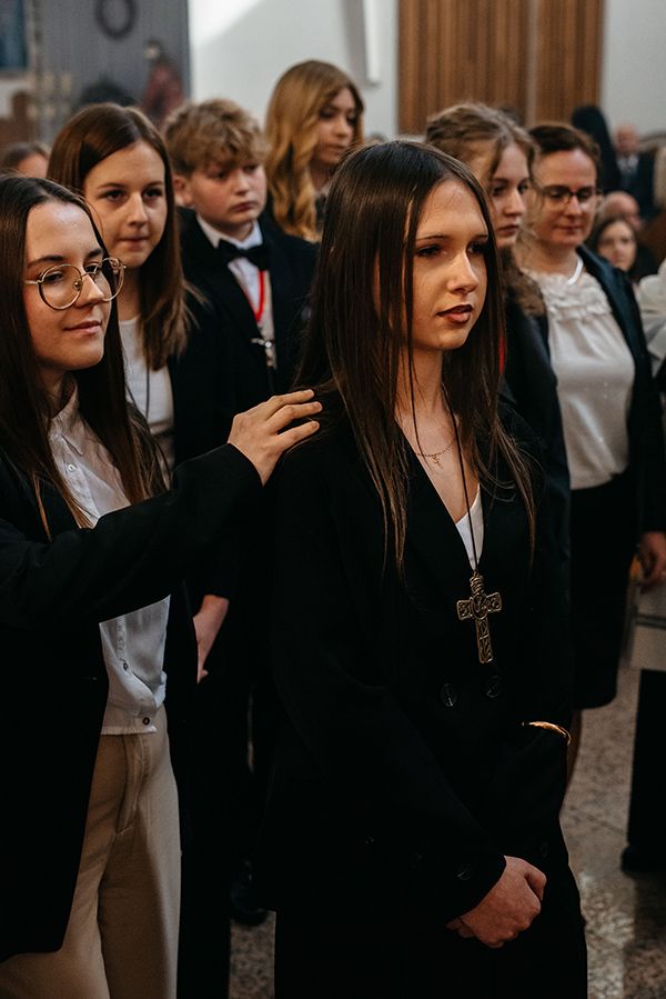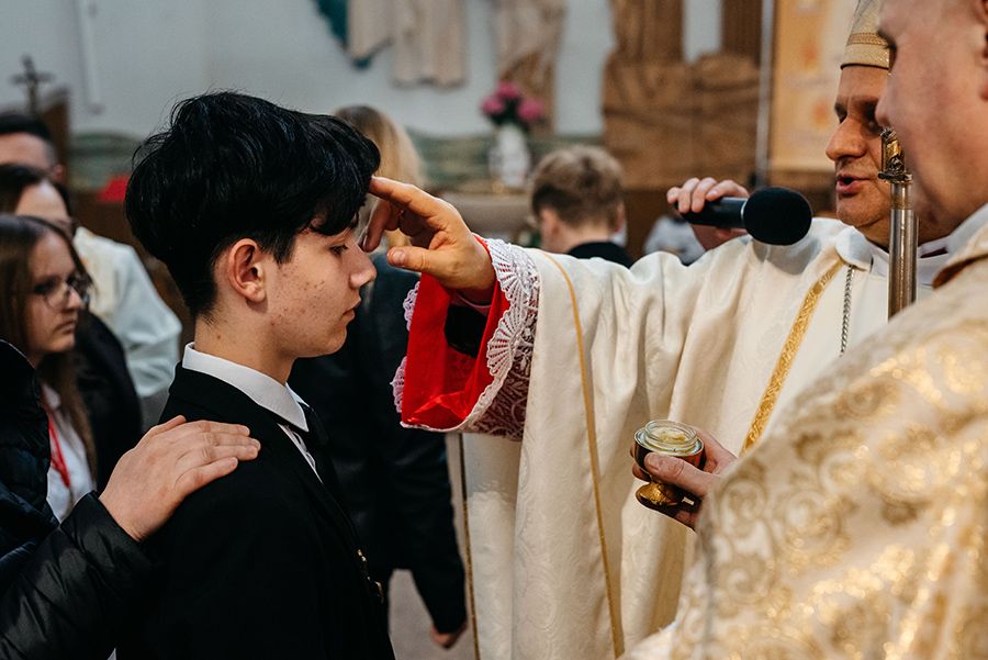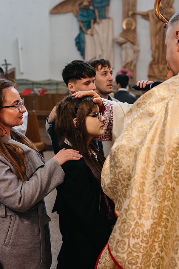 We wtorek w Oktawie Wielkanocnej 07 kwietnia 2026 r. w kościele pw. Chrystusa Króla Wszechświata w Łękach Górnych młodzież klasy ósmej z naszej parafii przyjęła z rąk J.E. ks. Bpa Leszka Leszkiewicza Sakrament Bierzmowania. Poprzez przyjęcie darów Ducha Świętego zostali oni ubogaceni łaską do mężnego wyznawania wiary i stawania w obronie wartości, które głosi Kościół Święty.