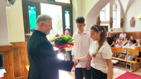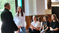 10 czerwca 2025 r. młodzież z klasy VII zdawała egzamin z wiedzy religijnej prze przyjęciem Sakramentu Bierzmowania. Egzamin przeprowadził wizytator kurialny a zarazem dziekan naszego Pilźnieńskiego Dekanatu ks. Marek Kuzak - proboszcz w Lubczy. Wszyscy wykazali się odpowiednią wiedzą. Teraz przez najbliższy rok muszą jeszcze odpowiednio duchowo się przygotować uczestnicząc w spotkaniach liturgicznych oraz żyjąc życiem sakramentalnym.