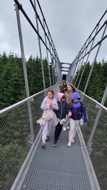 Niesamowitą atrakcją była wizyta w Czechach w Dolnej Moravi, gdzie chodziliśmy po ścieżce w chmurach, oraz po najdłuższym moście wiszącym na świecie, który mierzy 721 m. Ale najfajniejszą atrakcją był zjazd saneczkami na mamuciej zjeżdzalni - najdłuższej w całych Czechach.