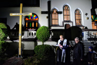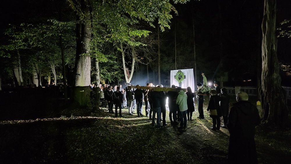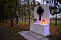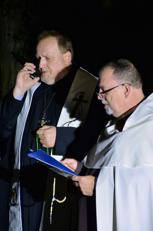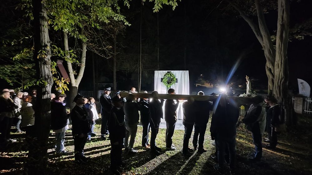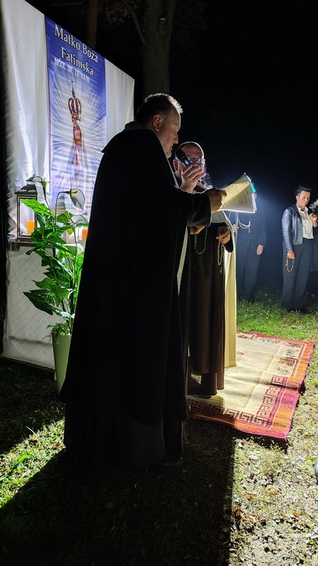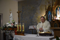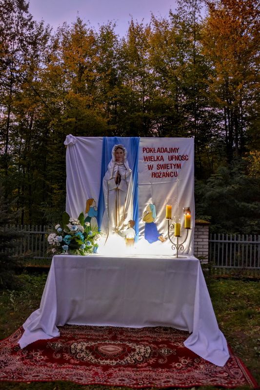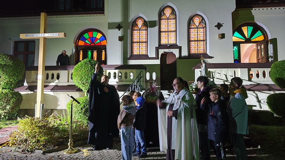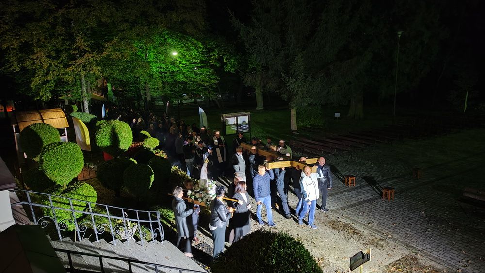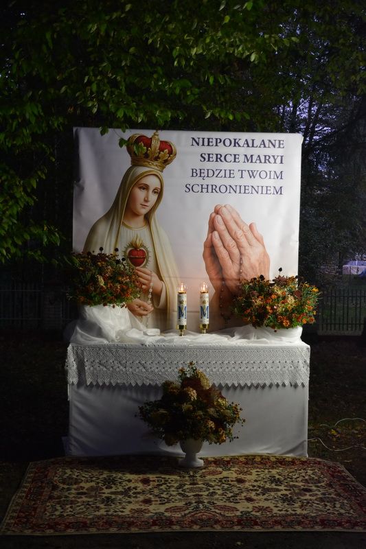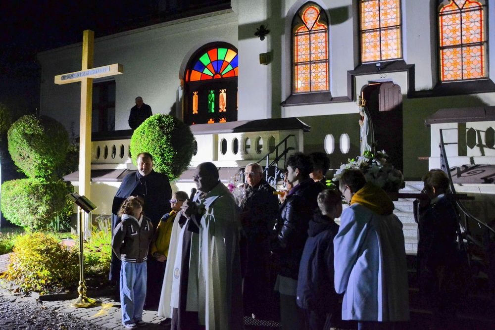 Zakończenie Misji Świętych zbiegło się z uroczyście przezywanym w naszej Parafii zakończeniem Nabożeństw Fatimskich. Licznie zgromadzeni wierni uczestniczyli w Eucharystii, a następnie w rozważaniu Bolesnych Tajemnic Różańca Świętego przy ołtarzach wykonanych w przyklasztornym parku. W procesji niesiona była figura Matki Bożej Fatimskiej oraz Krzyż Misyjny, który został poświęcony na zakończenie nabożeństwa Fatimskiego.